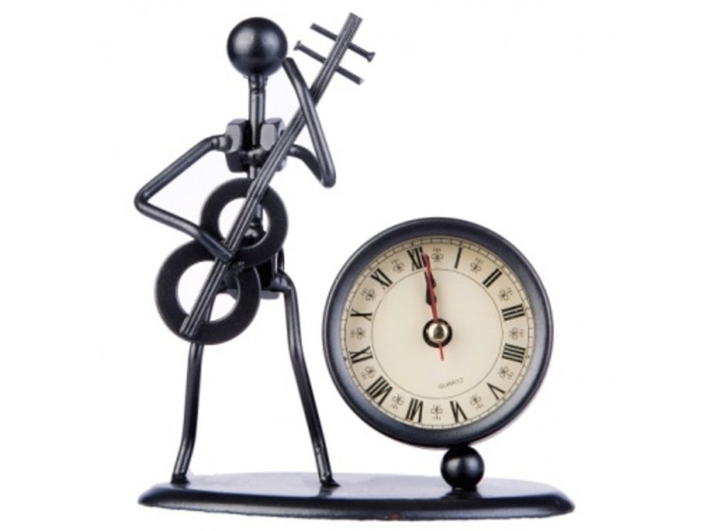 Socha baskytarista + hodiny.