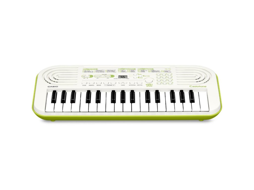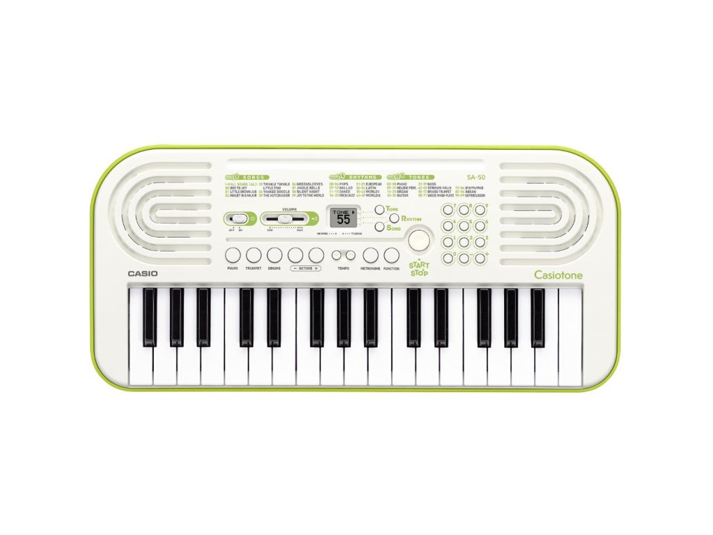 Dětský keyboard se 32 mini klávesami, vhodnými pro malé dětské prstíky. CASIO SA-50 jsou kompaktní a cenově dostupné klávesy určené primárně pro začátečníky nebo děti. Navzdory svým rozměrům disponují velikým množstvím funkcí a zvuků nebo například metronomem. K přehlednému ovládání slouží podsvícený LCD displej. Možnost napájení bateriemi oceníte hlavně na cestách nebo hraní venku. Bonusem je pak padesát doporvodných rutmů a deset demo skladeb.