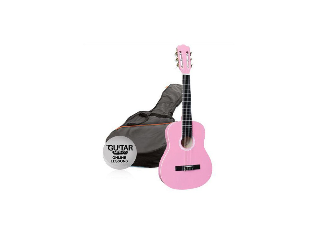 Paket klasické 1/4 kytary Ashton SPCG 14 v barevném provedení - růžová. Vynikající poměr kvalita/cena. Součástí dodávky je obal na kytaru a online škola hry (angličtina). Vrchní deska linden (lípa), krk javor, struny nylonové. Vhodná např. pro začátečníky - od 4 do 6 let (cca 100 - 115cm).