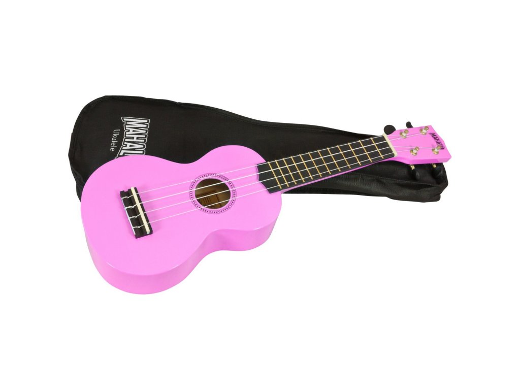 Sopránové růžové ukulele ze série Rainbow, které je dostupné v několika zářivých barevných provedeních. Tento model v barvě růžová.