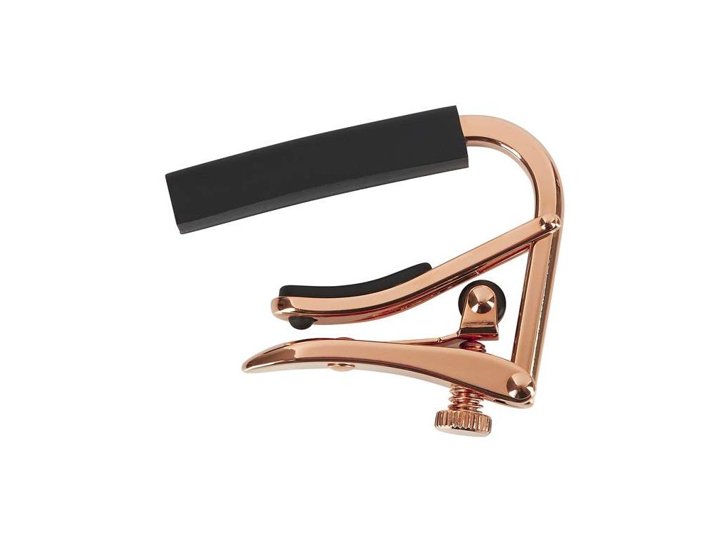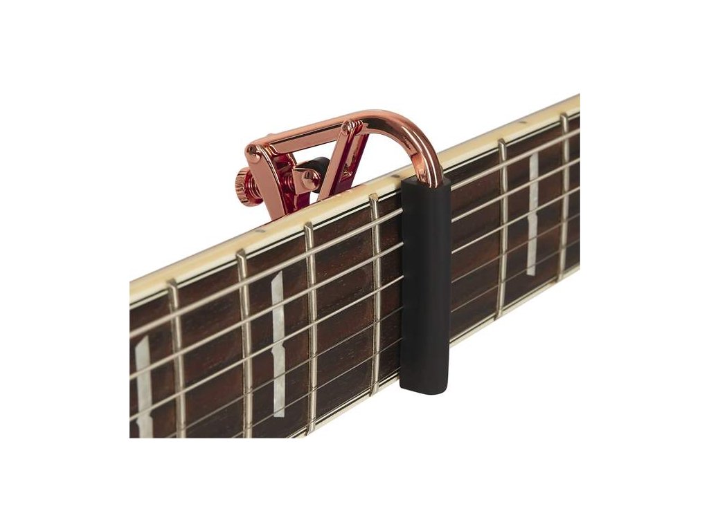 Jde o kapodastr s konstrukcí, která kombinuje jednoduchost s vysokou spolehlivostí a funkčností. Vyroben je z odolné mosazi v niklovaném provedení, díky které Vám vydrží po celý život, struny přitlačuje velmi kvalitní pevná guma, která brání i poškození krku ze zadní strany, a celý mechanismus funguje hladce díky nastavitelnému přítlaku.