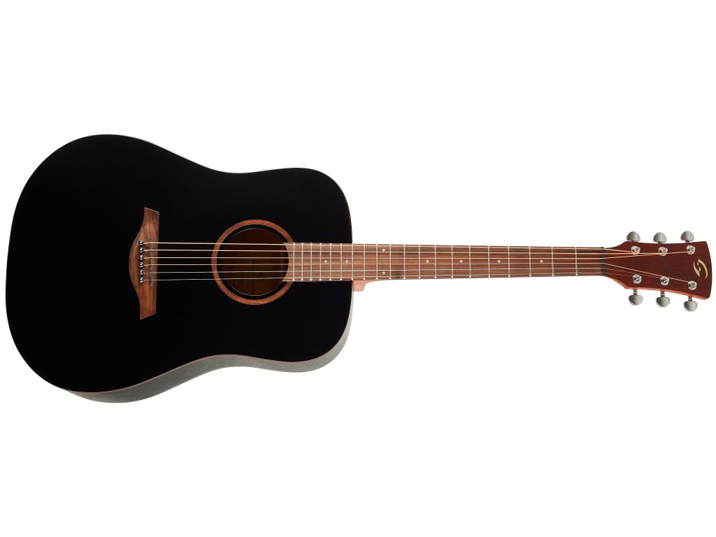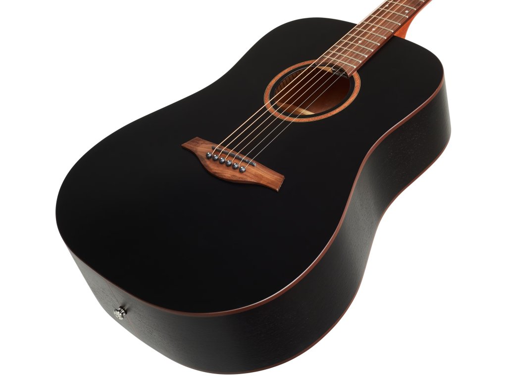 Akustická kytara CODY DN-BK nabízí přední desku z překližovaného smrku, zadní desku a luby z překližovaného sapele, krk z okoumé s příjemným C profilem, ořechový hmatník osazený dvaceti pražci, ořechovou kobylku, chromované die-cast ladící mechaniky a finiš open-pore black satin.