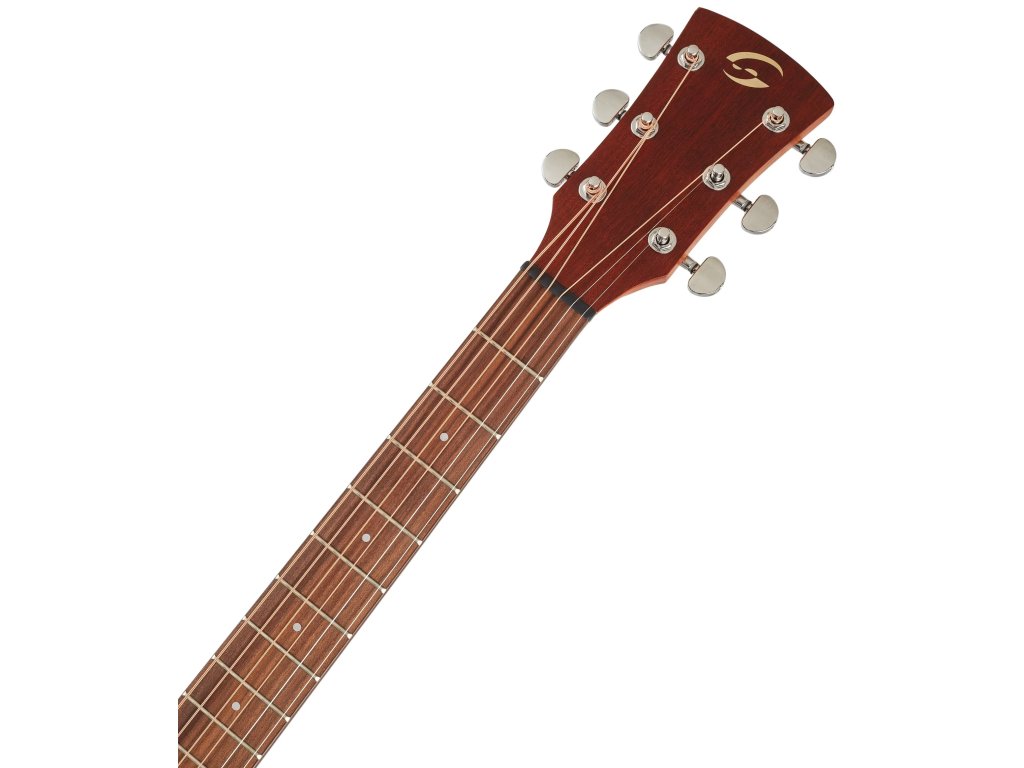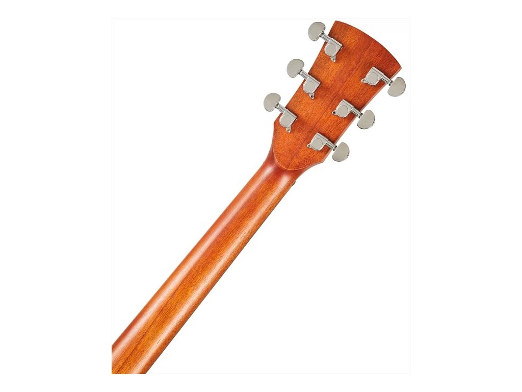 Struny jsou uchyceny v kobylce z hardwoodu a chromovaných Die-Cast ladících mechanikách. Tradiční prvky akustických kytar doplňují krásná hnědá lemovka.