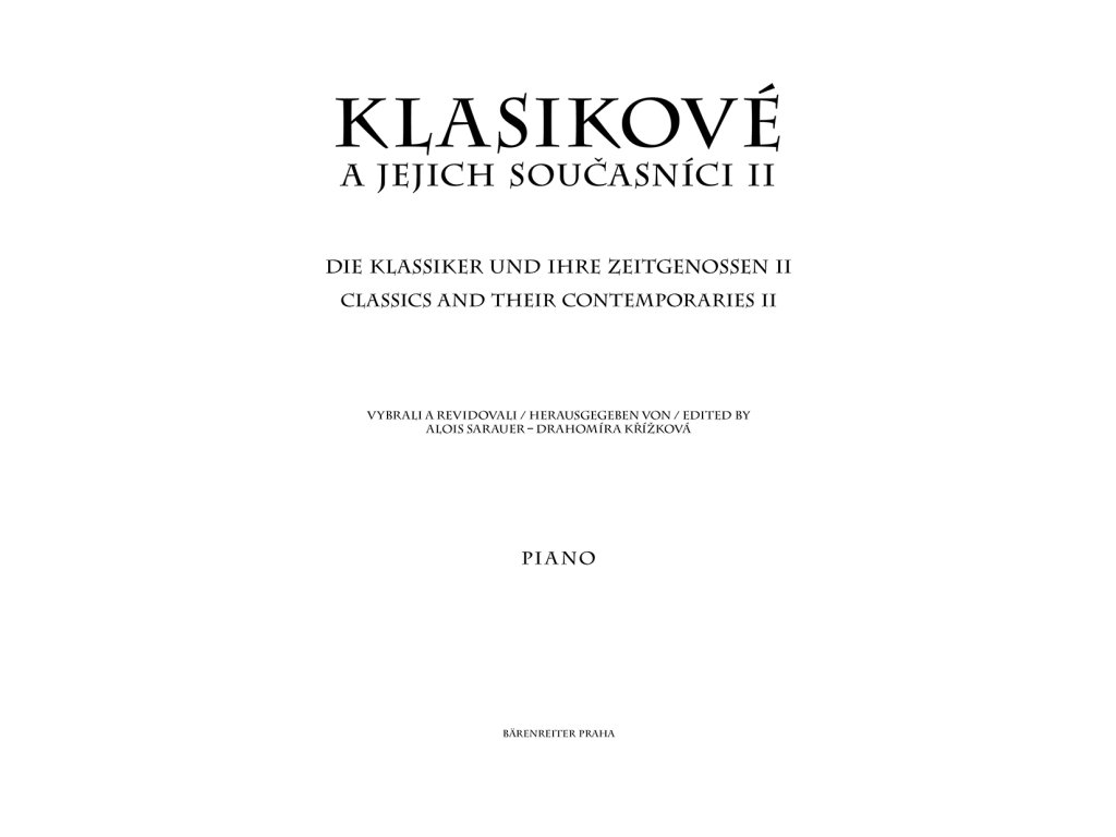 Klasikové a jejich současníci II patří i po více jak půl století k nejpoužívanějším klavírním albům pro mládež. Významní a oblíbení klavírní pedagogové Alois Sarauer a Drahomíra Křížková vybrali pro žáky, jejichž technická úroveň odpovídá zhruba 4.– 6. ročníku výuky na ZUŠ, krátké i delší skladby pro klávesové nástroje z druhé poloviny 18. a z počátku 19. století.