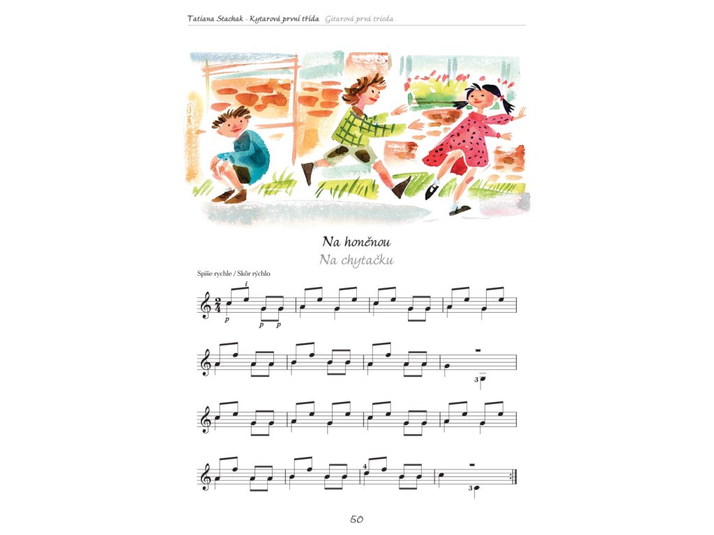 Přitažlivost výuky podle Kytarové první třídy zvyšuje její mimořádně nápadité výtvarné řešení. Učebnice o 128 stranách je vybavena bohatými barevnými ilustracemi, které vhodně doplňují její hudební obsah.