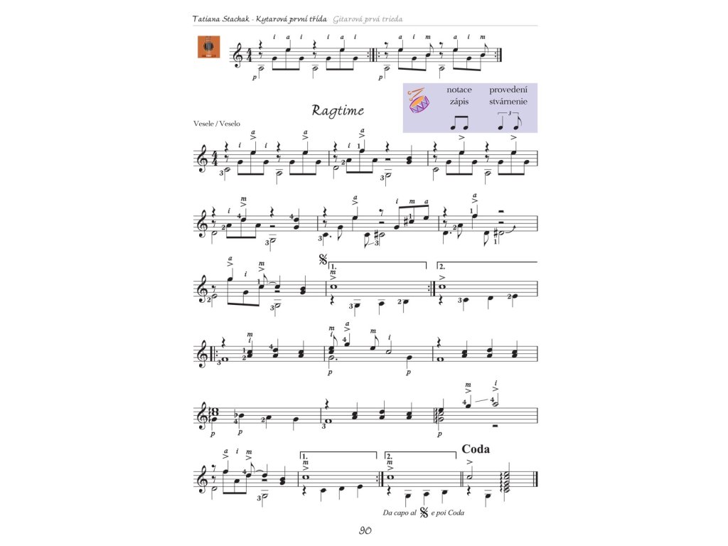 Kytarová první třída, 1. díl dvoudílné učebnice, je určena pedagogům a jejich žákům v prvních ročnících ZUŠ.