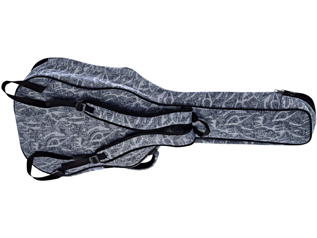 Na vnější straně obalu se nachází rozměrná kapsa pro uložení příslušenství, dvojice pohodlných nastavitelných popruhů a spolehlivý systém zipů. Díky své velikosti je obal perfektní volbou pro klasické kytary plné velikosti.