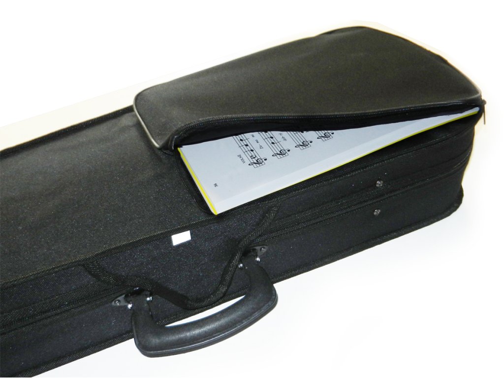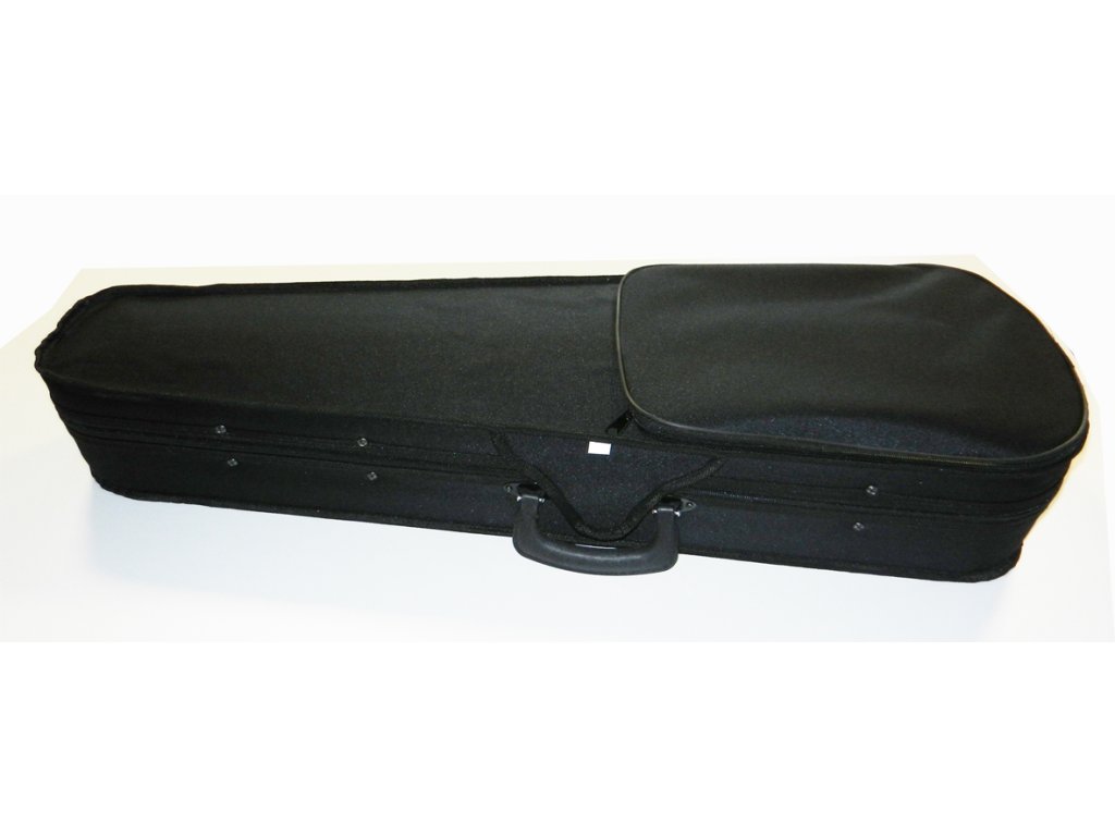 Odlehčený kufr pro 1/4 housle, pevná skořepina z lehké pěny, potažená odolnou látkou, samostatná přihrádka pro příslušenství, dva úchyty pro smyčce, ucho na přenášení.