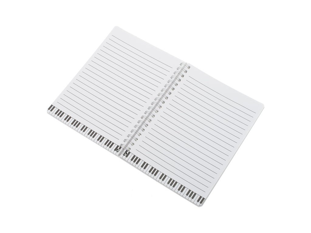 - linkovaný blok v kroužkové vazbě s krásným motivem kláves na okraji