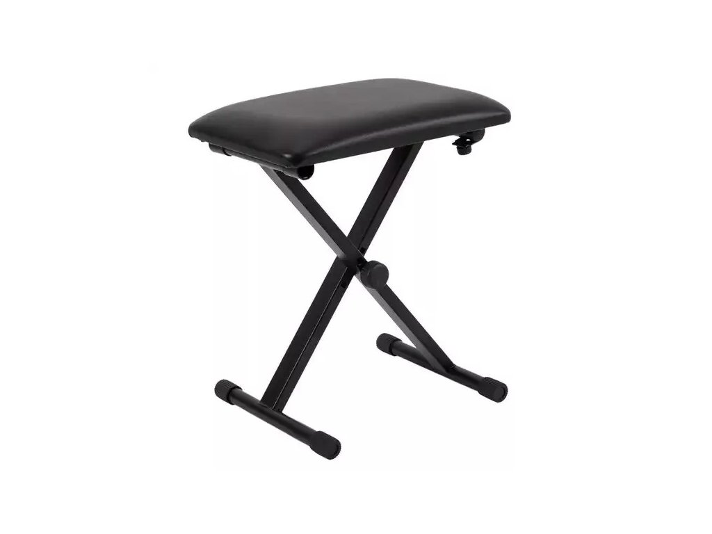 Stolička ke klávesovým nástrojům, kovová konstrukce. Po složení "plochá" možno uložit za skříň,pod postel....