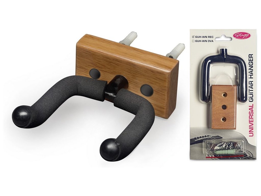 STAGG GUH -WN REC - Dřevěný nástěnný držák pro kytaru univerzál. Dřevěná hranatá základna. Možno připevnit na stěnu, skříň ap...