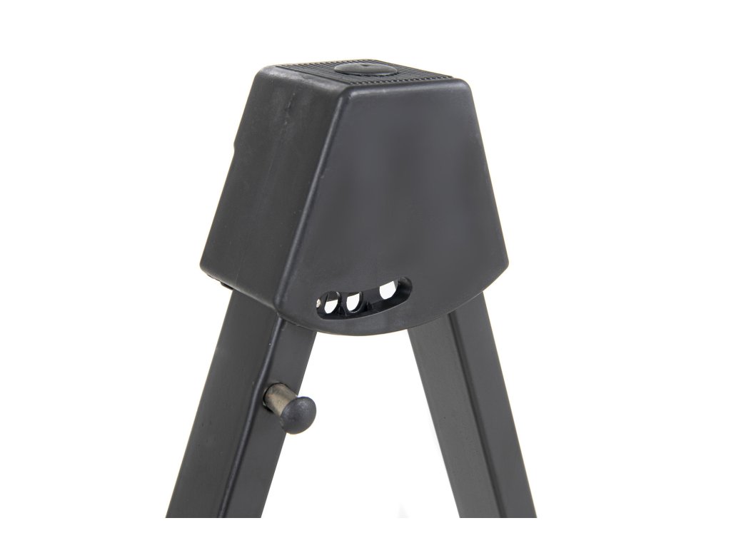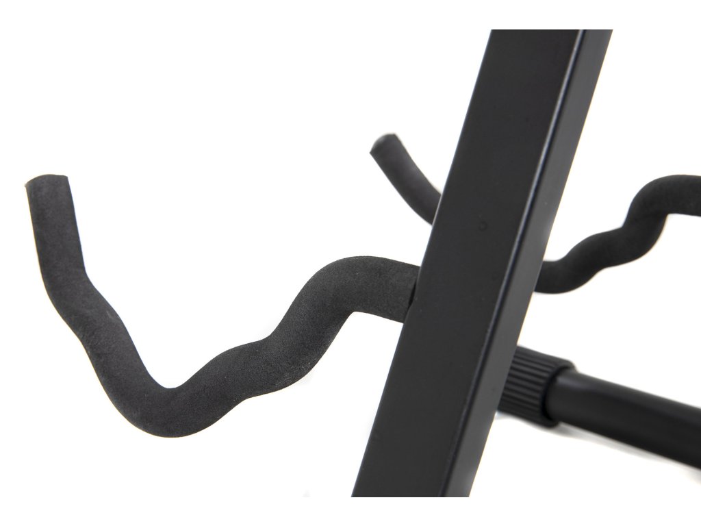 Skládací stojánek typu "A" na akustickou/klasickou kytaru, elektrickou kytaru/ baskytaru. Ocelová konstrukce, gumové nožky, ramena jsou vypolstrována měkkou gumou. Snadná manipulace, spolehlivý provoz.