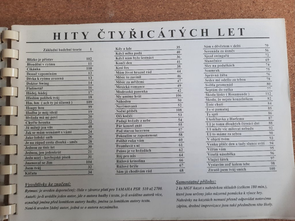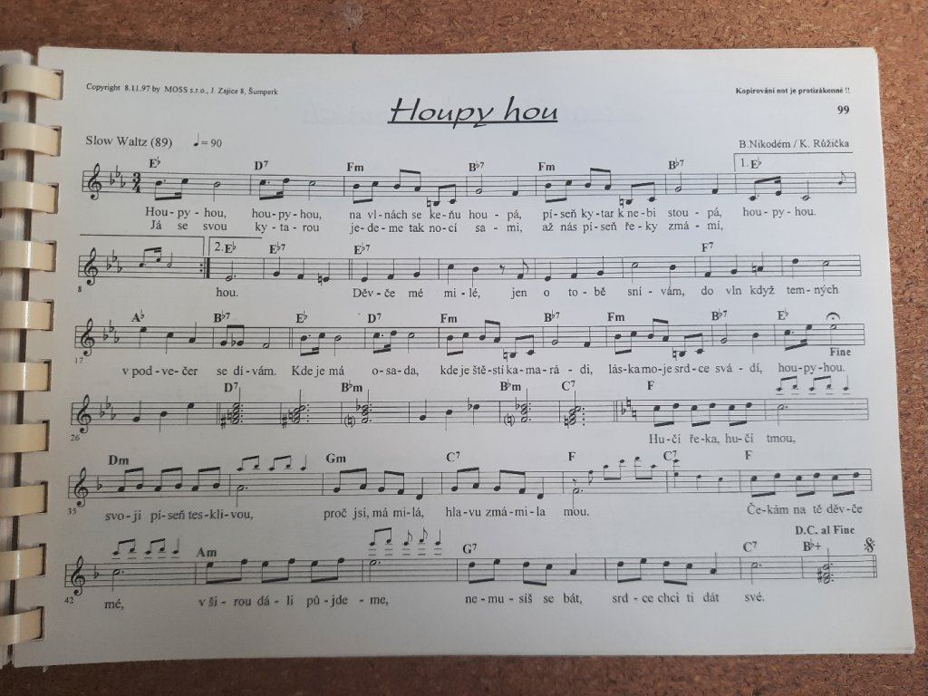 Zpěvník je v provedení melodická linka, text, akordové značky.