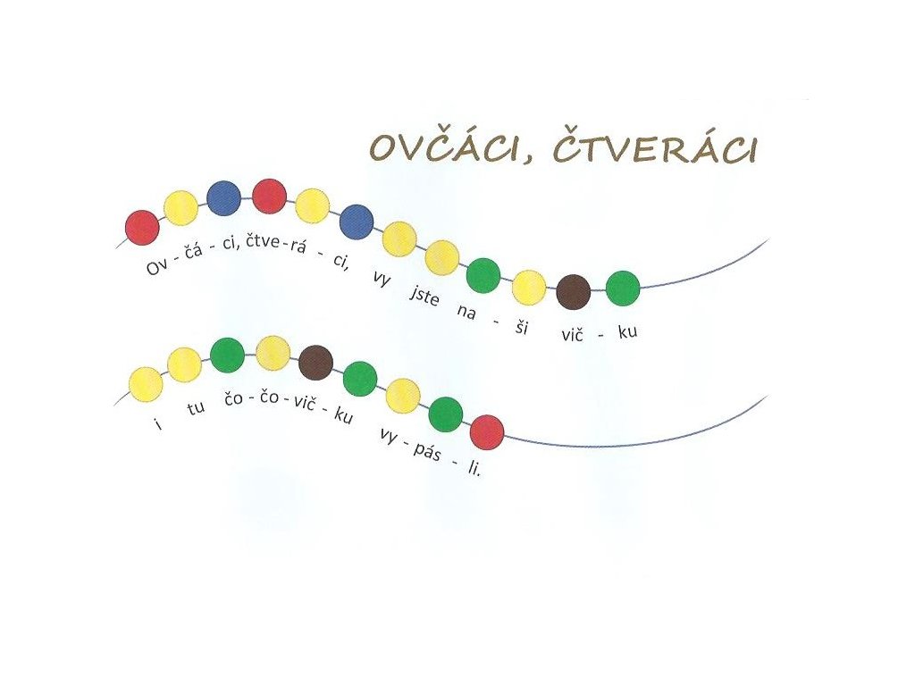 Písničky pro děti, které ještě neumí noty. Místo not jsou tu barevné korálky na niti, barva korálků pomáhá ke správné melodii.